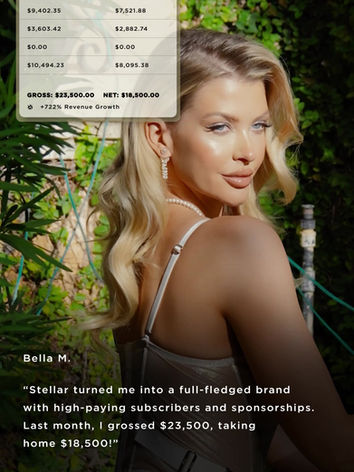 Our testimonials showcase success stories of creators who partnered with Stellar Management, highlighting their impressive revenue growth and stress-free scaling. From turning $2K/month struggles into $27K+ earnings to six-figure breakthroughs, these creators have seen life-changing results with hands-off management and expert strategy.